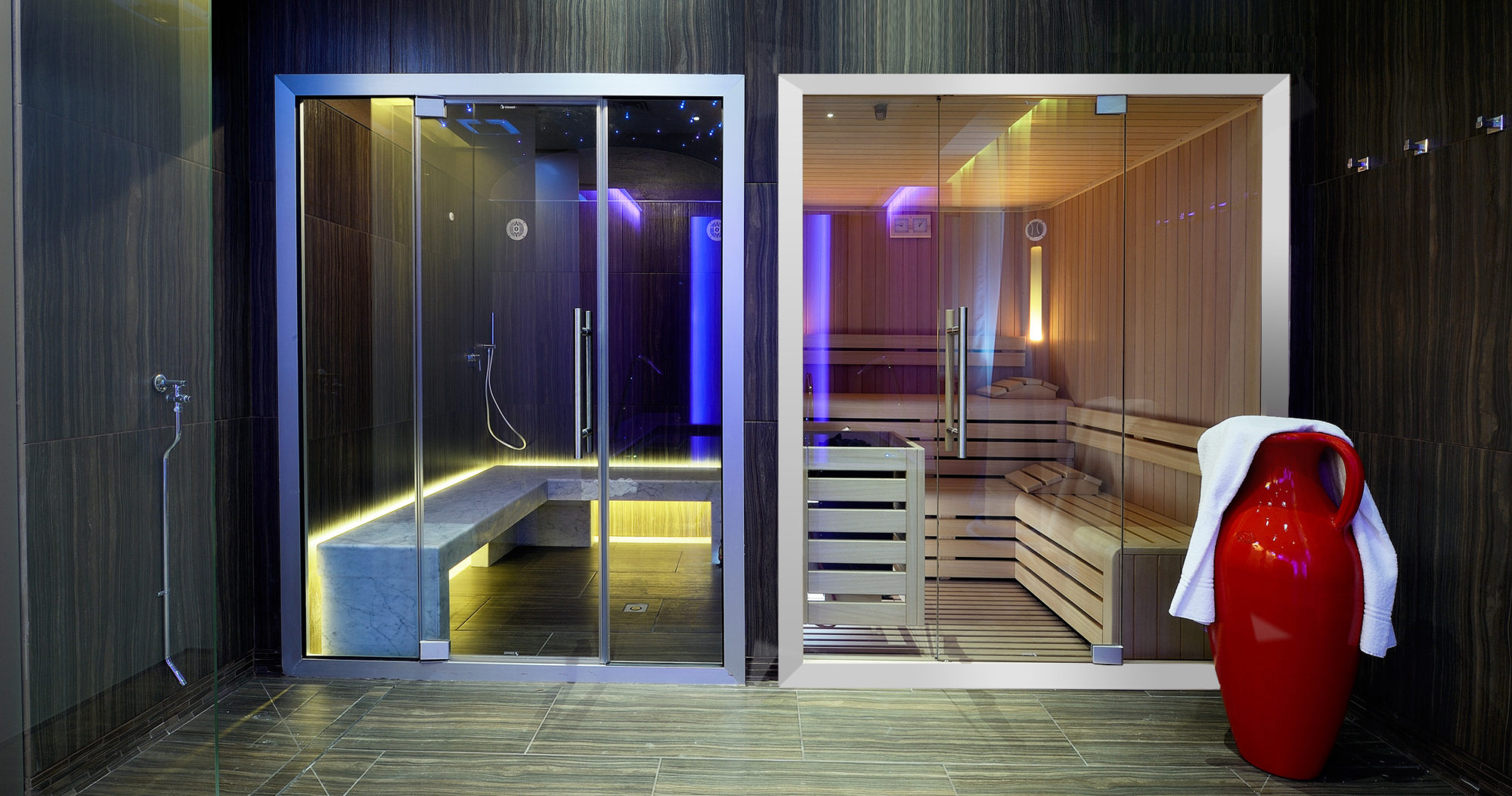 Trasforma il tuo bagno in un angolo di benessere con la nostra vasta gamma di prodotti wellness. Offriamo vasche idromassaggio, minipiscine, saune, Hammam e docce multifunzione, inclusi modelli con cromoterapia, docce a cascata ed emozionali.